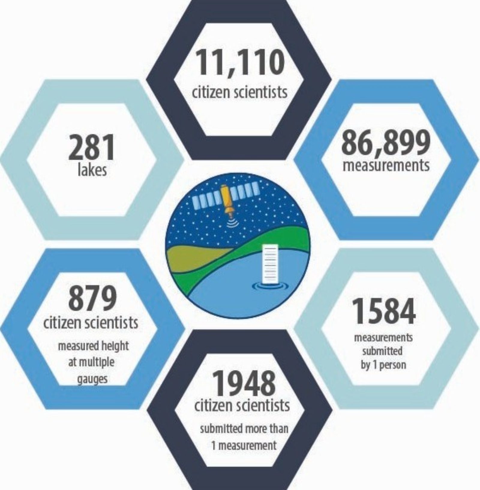 In those 9 years, the LOCSS project has grown to include 281 lakes in 11 countries on 5 continents! In that time, we have engaged more than 11,000 volunteer citizen scientists, who have contributed nearly 87,000 measurements. We've learned a lot about lakes, the water cycle, and how accurate satellites can be when measuring water on earth.