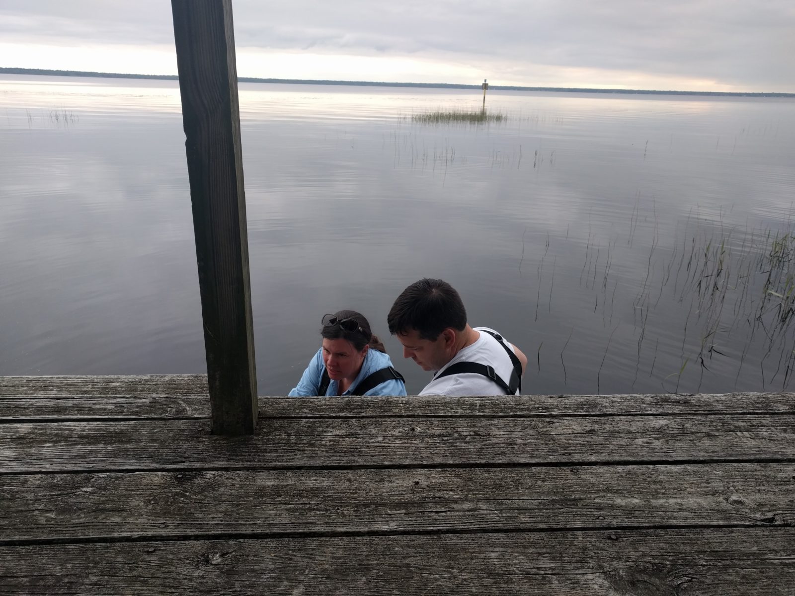 LOCSS Team members Install a gauge in Lake Waccamaw, NC in 2017
