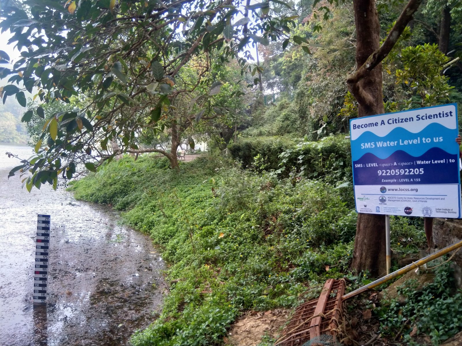 The gauge is installed near the boating area, at the southern end of Pookode Lake.